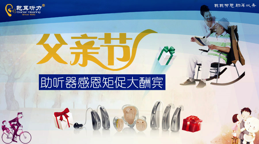 一年一度的父親節(jié)來(lái)臨了,乾耳提醒您關(guān)愛(ài)爸爸的聽(tīng)力健康! 屆時(shí),我們?yōu)槟母赣H準(zhǔn)備了精美的小禮品,誠(chéng)邀您帶他來(lái)體驗(yàn)更專業(yè)的驗(yàn)配、更先進(jìn)的產(chǎn)品、更貼心的服務(wù),讓她能夠與您無(wú)障礙的分享快樂(lè)。 |