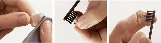 麥克風(fēng)口、出聲口(孔)是助聽器上非常關(guān)鍵的進(jìn)出口,氣孔也是一條非常重要的影響舒適度的口子。如果把麥克風(fēng)口比作人的耳朵,那出聲孔就好比是嘴巴,氣孔就像是鼻子,捂上哪個都會極其不舒服,嚴(yán)重影響聽音發(fā)聲。外界的所有聲音都是通過麥克風(fēng)口進(jìn)行采集、氣孔進(jìn)行調(diào)節(jié)、經(jīng)受話器出聲口輸出進(jìn)入耳道的。所以,這幾個看似簡單的口子的作用不得小覷。 在我們平常的工作當(dāng)中就會有顧客抱怨助聽器聲音變?nèi)趸蛲蝗粺o聲的,其80%以上的原因來自于麥克風(fēng)或出聲孔堵塞,而非助聽器質(zhì)量問題。有客戶很著急的來跟我們說:“你快給我看看,機(jī)器是不是壞了?聲音越來越弱,今早戴上直接沒音了!”經(jīng)檢查發(fā)現(xiàn),并不是客戶的助聽器壞了,只是助聽器麥克風(fēng)口被油膩物嚴(yán)重堵塞,整個口子都被填平了。用小鉤子一點(diǎn)點(diǎn)清理并多次吸附,才看到網(wǎng)眼。清理后聲音恢復(fù)如初。還有的用戶氣孔內(nèi)落入片狀耳垢,感覺聲音悶堵或音質(zhì)異!..其實(shí)這些問題只要通過專業(yè)的清理保養(yǎng)就可以解決的。當(dāng)然,佩戴者的日常保養(yǎng)和清潔護(hù)理也是非常有必要,在此給大家一些佩戴助聽器的建議: 1手上有油膩或臟污時,要先洗手擦手再拿助聽器; 2每天摘下助聽器后,用柔軟的干布擦拭助聽器表面; 3依次將麥克風(fēng)口、出聲口朝下,小刷子刷毛朝上輕掃,將落入麥克風(fēng)口或出聲口的耳垢等清掃出來; 4定期取下防垢罩,將出聲口附近肉眼能看到的耳垢清掃出來; 5定期更換新防垢罩; 6定期用軟工裝清理疏通氣孔; 7每天用酒精棉棒清潔耳道。 最后,祝您聽力穩(wěn)定,身體健康。歡迎您定期來驗(yàn)配中心進(jìn)行全面保養(yǎng)。